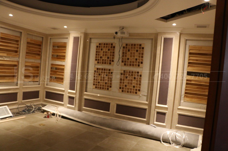 由于系统包含影院和卡拉OK部分,所以整个房间的混响度要保持在0.8秒左右,混响时间要照顾到卡拉OK效果,因此混响时间有所延长。